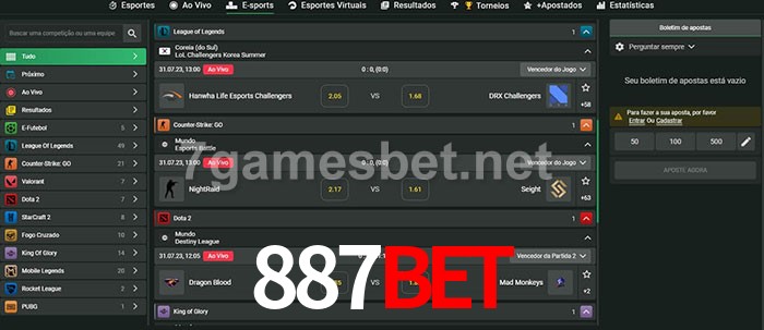 A aposta 887bet oferece aos jogadores a experiência mais conveniente de apostas em eSports!